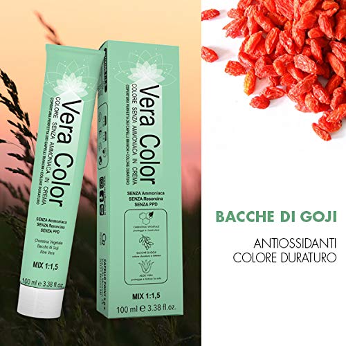 Vera Color - Castano Chiaro Cacao 5.7 - Colorazione Professionale Long Lasting in Crema Senza ammoniaca con Cheratina Vegetale, Aloe Vera e Bacche di Goji - Copertura Totale Capelli Bianchi - 100ml