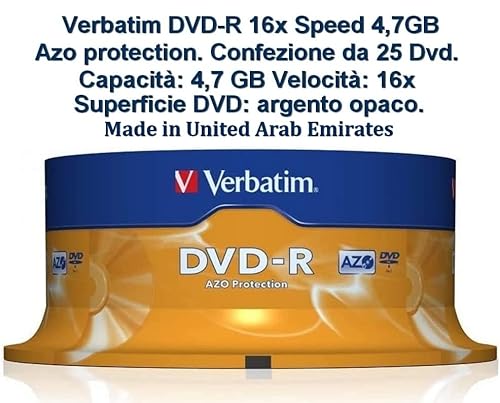 Verbatim - Confezione da 25 DVD-R da 4,7 GB, 16 x (25 pezzi)