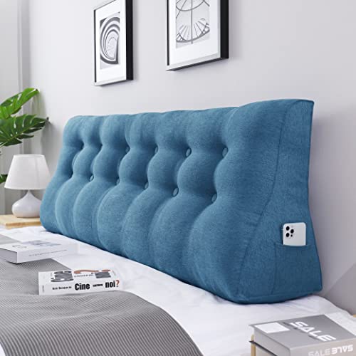 VERCART Cuscino Cuneo Letto Schienale Rialzato Doppio Petto Schiena Grandi Cuscini per Dormire da Lettura Grande Testiera per Letto Divano con Federa Removibile Biancheria Blu 180cm
