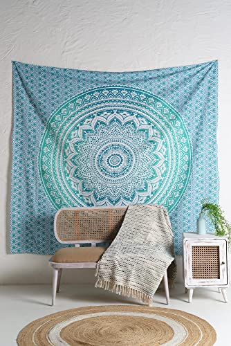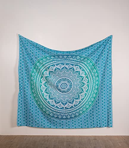 THE ART BOX Verde E Bianco Parete Boho Mandala Grande Arazzo - 210x230 cm Indiano Cotone Hippie Parete Arredamento Bohemian Psychedelic Arazzi per Soggiorno