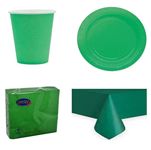 Kit Verde Coordinato monocolore in carta x 25 Persone Piatti - Bicchieri - Tovaglioli - Tovaglia