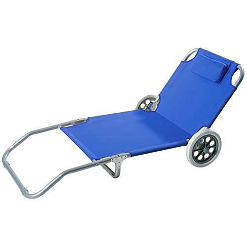 Utilizzo: Spiaggina trolley multifunzionale pieghevole con due ruote. Pratico cuscinetto appoggia testa per distendersi comodamente e prendere il sole