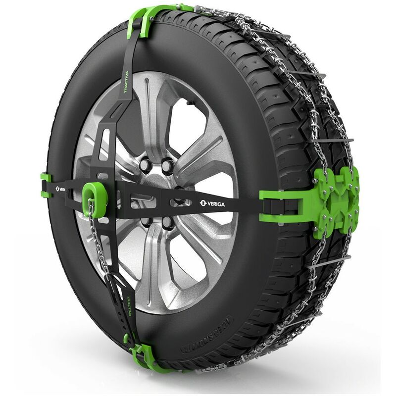 La catena da neve VERIGA TRACTIVA più robusta con 16 mm di ingombro a maglia quadra tra battistrada e telaio MASSIMA COMODITÃ. La catena Tractiva Auto si fissa solo sulla parte esterna delle ruote motrici. Niente più difficoltose operazioni per allacciare la catena sulla parte interna della ruota. MASSIMA ADERENZA. Tractiva Auto si autoregola: ciò consente una perfetta aderenza della catena al battistrada dello pneumatico che si traduce in una guida sicura e silenziosa. FACILITà DI MONTAGGIO. La catena Tractiva Auto offre la massima facilità di montaggio, in quanto va semplicemente posizionata su una parte dello pneumatico. Sfruttando lâavanzamento dellâautomobile la catena sale da sola sulla ruota senza essere toccata. CERTIFICAZIONI COMPATIBILE CON 195/70-15 195/75-15 225/65-15 235/60-15 245/60-15 285/50-15 175/75-16 195/65-16 215/60-16 220/60-16 235/55-16 245/55-16 265/50-16 185/65-17 215/55-17 235/50-17 295/40-17 335/35-17 215/50-18 235/45-18 265/40-18 295/35-18 225/40-19
