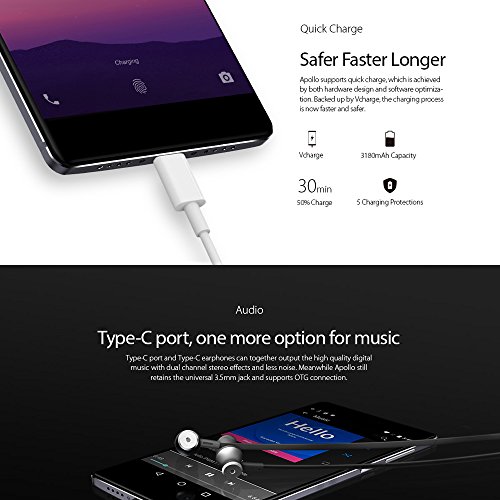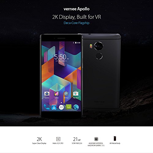 Vernee Apollo Smartphone 4G Android 6.0 (5.5'' 2K 2560 * 1440Pixels 2.5D Schermo, MTK6797T Helio X25 Max 2.5GHz 64-Bit Deca Core 4GB RAM+64GB Rom, Dual Cameras 8MP+21MP)