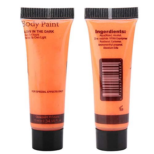 Vernici per il corpo fluorescenti, 10 ml di tubi per la vernice per il corpo luminescenti per il viso Pigmenti per disegno lavabili per feste di compleanno per feste di Halloween[arancia]Body Paint