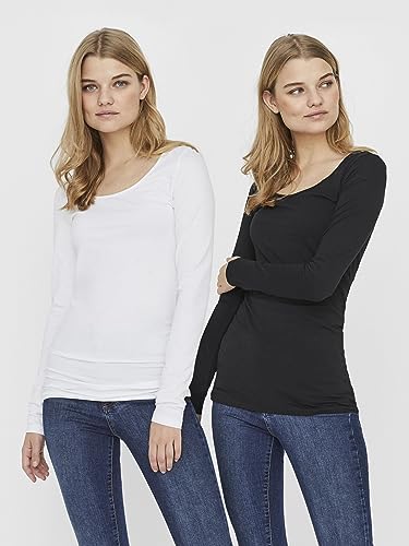 Vero Moda Camicetta a Maniche Lunghe, Confezione da 2, Bianco/Nero (2 x Bianco Acceso/2 x Nero), XXL