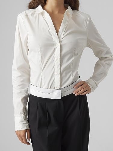 VERO MODA Camicia a body manica lunga, elasticizzata M Bianco