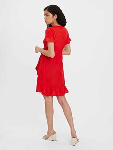 VERO MODA Mini abito femminile avvolgente, Rosso - high risk red, XS