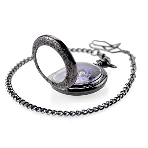 Veroda - Orologio da tasca meccanico Steampunk con movimento a mano, in metallo inciso, colore: blu e nero
