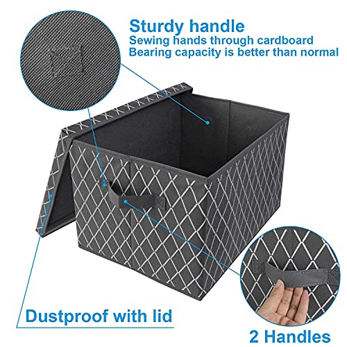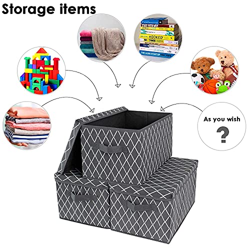 Veronly - Contenitore per bidoni con coperchio, in tessuto, pieghevole, con maniglie, per casa, camera da letto, ufficio, confezione da 3 (grigio)