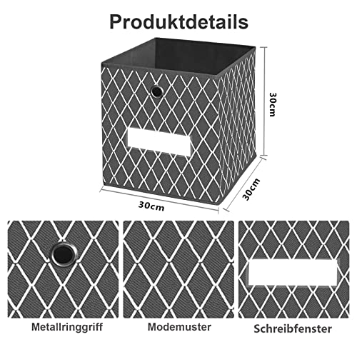 VERONLY Kallax - Set di 6 scatole portaoggetti in tessuto, 30 x 30 x 30 cm, con manici, per scaffali cubi, giocattoli, vestiti, grigio