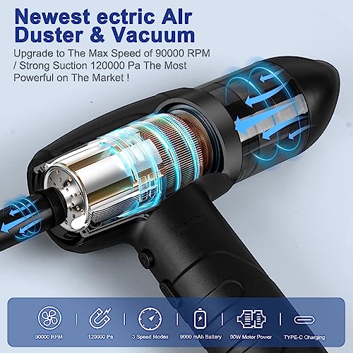 Verozza Aria Compressa Elettrico Rimuovi Polvere Senza Fili & Aspirapolvere 2 in 1, Batteria da 6000mAh Ricaricabile, 12Kpa Aspirazione, 90000RPM Mini Aspirapolvere per Tastiera,PC,Pulizia Casa,
