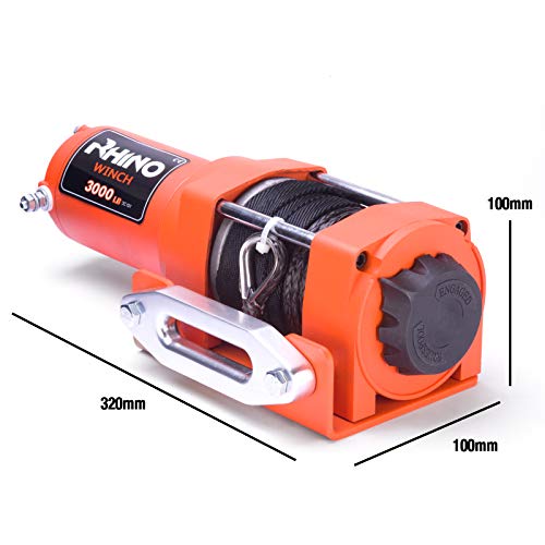 Verricello elettrico Rhino 3000lbs/1360Kg 12V 15m Corda sintetica in Dyneema più resistente del cavo in acciaio Argano di recupero per barche e veicoli leggeri