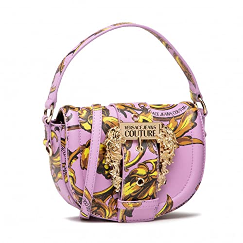 Versace JEANS COUTURE Borsa a tracolla mezzaluna in ecopelle saffiano viola con stampa Regalia Baroque