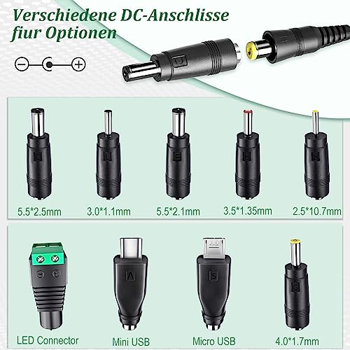 Adattatore di Ricambio Universale - Funziona con la maggior parte degli elettrodomestici, come bilance, router, altoparlanti, luci a LED, sistema di telecamere CCTV, videocamera di ricarica USB e altro. [Nota: La polarità è positiva e irreversibile.]