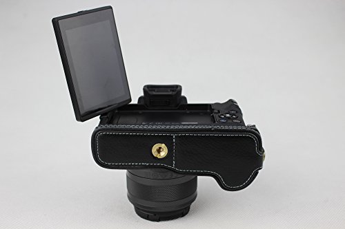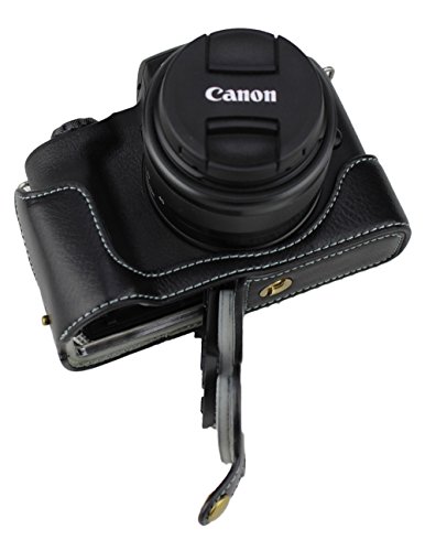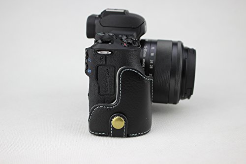 Versione inferiore di apertura Custodia protettiva in vera pelle per fotocamera Canon EOS M50 con cinturino nero