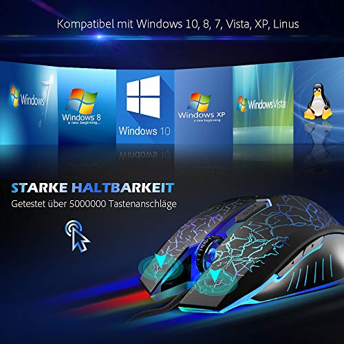 VersionTech Gaming Mouse, mouse da gioco con 7 colori e 6 LED, con attacco USB, ottico, ad alta precisione, 2400 DPI, per Mac e PC nero Nero