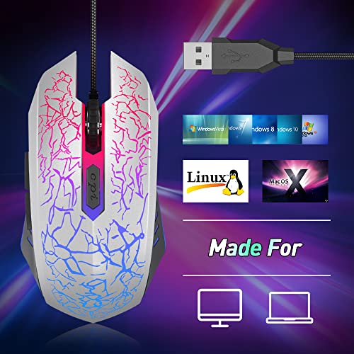 VersionTECH. Mouse Gaming con Fili, Mouse da Gioco Bianco,sensore Ottico Fino a 3600 DPI, 6 Tasti e Illuminazione a LED con 7 Colori