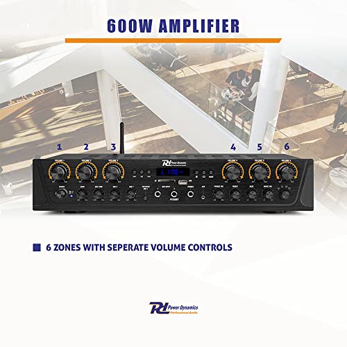 Versterker met Bluetooth - Power Dynamics PV260BT - 6-zone versterker met radio & mp3 speler - 12x 50W - Zwart