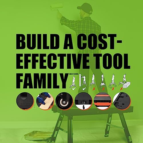 Vertak 5 in 1 banco da lavoro pieghevole con spina, per la casa e fai da te banco di bloccaggio 150 kg di capacità di carico Ampia superficie di lavoro Scala e angoli stampati Pieghevole Versatile