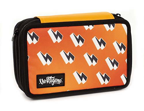 Vertigine Astuccio Triplo, Grafica Fulmini con Pennarelli ed Accessori Scuola, Poliestere, Arancione, 20 cm