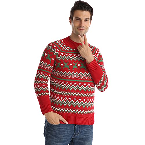 Vertvie UUgly Christmas Sweater - Maglione natalizio con alce a maniche lunghe, con scollo rotondo, per uomo e donna, H-rosso, M