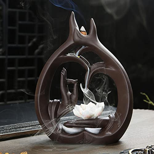 Verus - Bruciatore di incenso a flusso inverso, a forma di foglia di loto, con 10 coni di incenso, in ceramica, per la casa