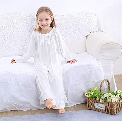 Camicia da notte per ragazze - Materiale in cotone comodo e traspirante, morbido, ampio e traspirante, stile manica lunga, design girocollo principessa. orlo piuttosto increspato. Il miglior regalo di compleanno per le ragazze e ottimo per una festa in pigiama.
