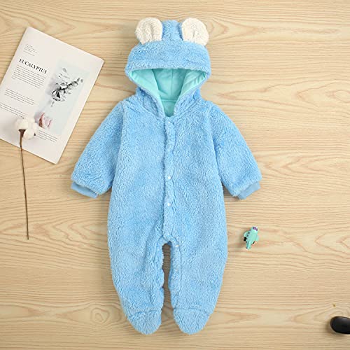 Verve Jelly Neonati Maschi Ragazze Tuta Cappuccio Velluto in Pile Manica Lunga Pagliaccetto Footies Pigiama Intero Completi Tuta Abbigliamento Azzurro 70 0-3 Mesi