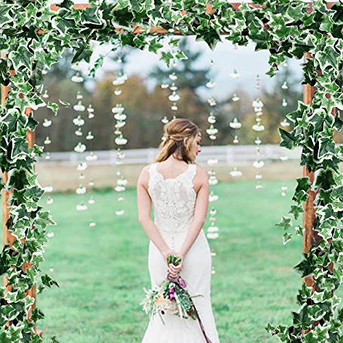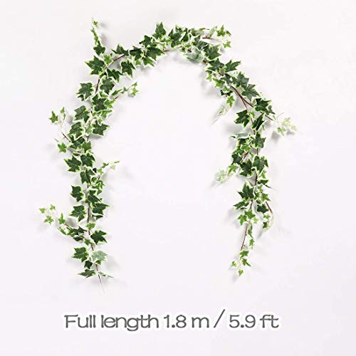 ✿ Dimensioni e quantità: Offriamo A. Green Ivy, B. Green White Ivy, C.5PCS Ivy, tre opzioni. A e B: 1,9 m per falsa edera. C: La lunghezza totale è di 44 piedi, e la nostra edera falso ha cinque 8.9 piedi separati.