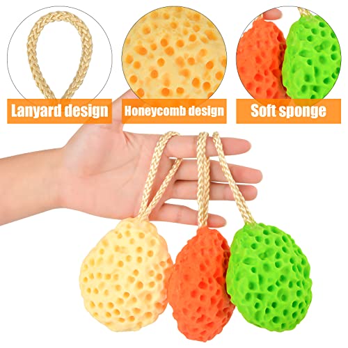 Contenuto della confezione: la confezione include 3 spugne da bagno morbide con colori diversi, giallo, verde, arancione, all'altezza delle diverse esigenze e gusti del tuo familiare.
