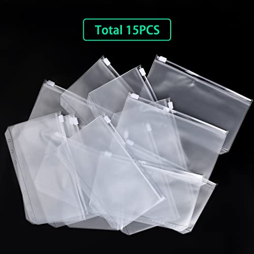 Vesaneae 15 Pezzi A6 Tasche Raccoglitore in Plastica, 6 Fori Cartelle a Cerniera, Borsa a Fogli Mobili in PVC, Buste Trasparenti, Raccoglitore ad Anelli per Documenti Cancellerie Taccuino Carte