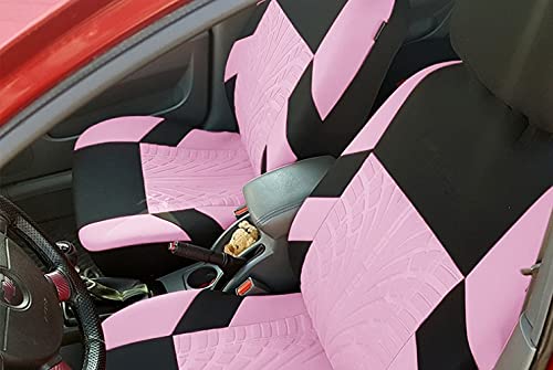 Veshow - Coprisedile universale per auto, 4 pezzi, anteriore e posteriore, universale, in pelle sintetica, con funzione posteriore divisa, parti auto, interno (nero e rosa)