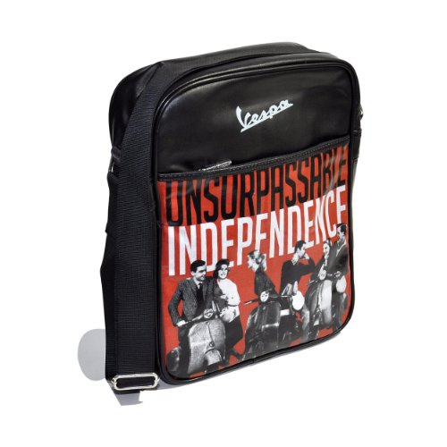 Vespa Kult-Retro VPSB77 - Borsa a tracolla in formato verticale, 33 cm, Nero/Rosso