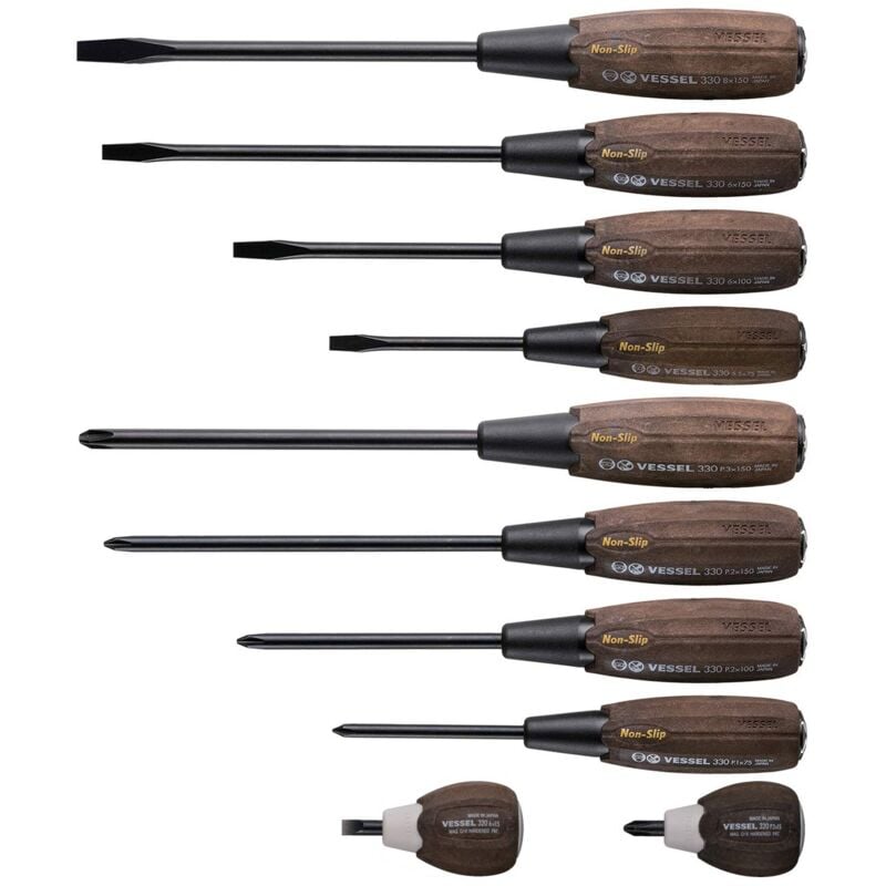 Set di 10 pezzi con scatola per il trasporto. woodcompo è perfetto per lavorare in presenza di grasso come auto manutenzione e ferro. Può essere utilizzato anche per lavori di elettronica, elettronica, lavori di montaggio fai da te e falegnameria. Anche con le mani oleosa o grassa, hai solo perdere circa l '3% di coppia. I cacciaviti antiscivolo sono perfetti per lavorare in presenza di grasso, come automobile e motocicletta manutenzione. Manutenzione per automobili, motociclette, macchinari e, inevitabilmente viene fornito con olio. Con tali antiscivolo wood-compo cacciaviti, che si sente l' efficace trasmissione della coppia durante il serraggio viti. Questo perché la superficie ruvida che è fatto da legno polvere contenuta nella presa blocca il flusso dell' olio.