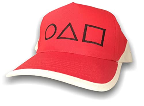 VestiLoStaff Cappello Baseball Squid Gioco del Calamaro, Serie TV, Rosso con Ricamo Nero Simboli Triangolo, Quadrato e Cerchio