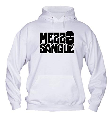 Vestin Felpa Uomo con Cappuccio -Mezzosangue- Made in Italy (M, Bianco)