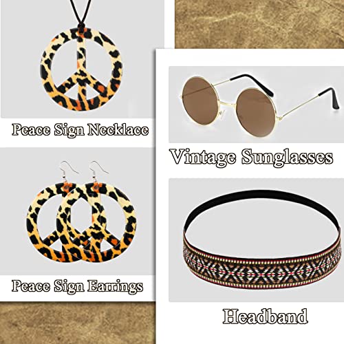 【Costumi Cosplay Perfetti】Il set hippie è pieno di stile vintage degli anni '70. Puoi vestirti con i tuoi amici e goderti la festa. Adatto a tutti i tipi di feste cosplay, Halloween, Natale, carnevale, feste a tema retrò, feste in discoteca e così via.