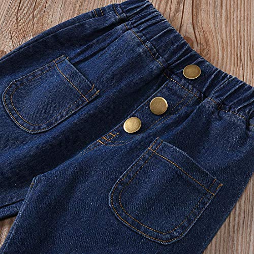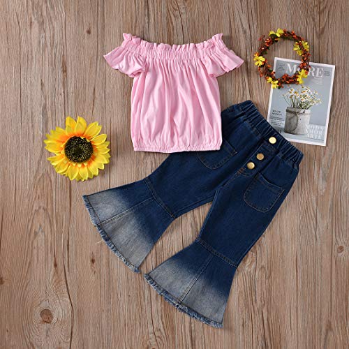 Vestiti Autunnali Estivi per Neonate 2 Pezzi Magliette a Maniche Corte con Spalle Scoperte Pantaloni a Zampa d'elefante Pantaloni a Zampa di Jeans Set