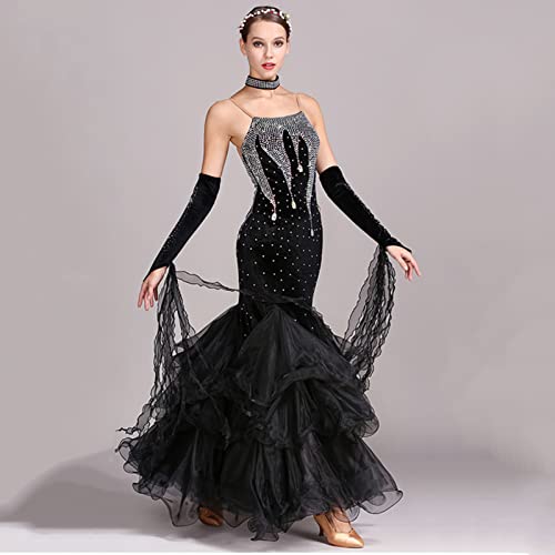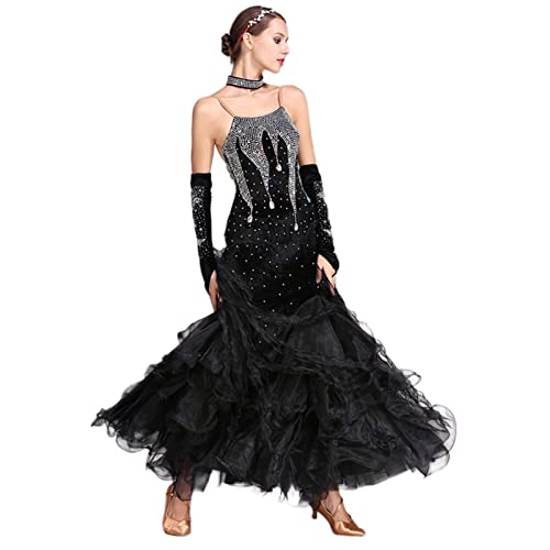 Vestiti da Ballo Standard Abiti Donna Tulle Cuciture in Pizzo Vestito da Sociale Abiti da Ballo da Sala per Le Donne Handmade Vestiti da Ballo Moderno Big Swing,Nero,S
