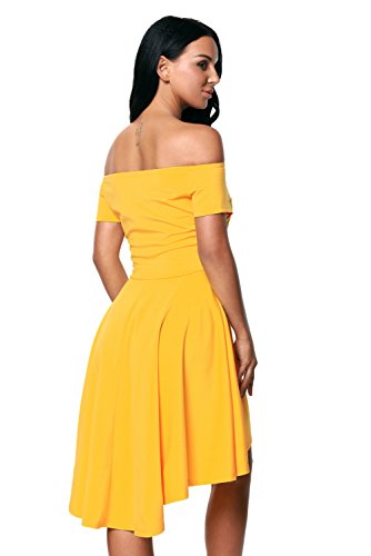 Vestiti Donna - Abiti Lunghi E Corti Ragazza - Fashion Moderno da Discoteca Party Sera Ballo O Festa - Eleganti per Sposa Cerimonia O Damigella (3XL, Modello Corto Giallo)