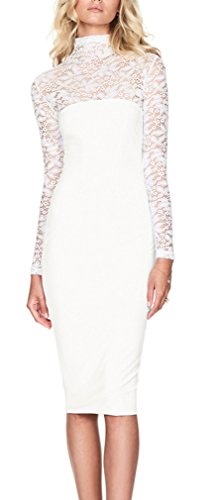 Vestiti Donna Eleganti Vintage Vestito Tubino Ginocchio Abito in Pizzo Manica Moda Giovane Lunga Slinky Collo Alto Dell'Anca Pacchetto Abiti da Cerimonia Vestitini Autunno Invernali