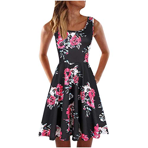 Vestiti da Donna,Estate Vestito Donna Elegante,Abito Lungo Pieghe donna Eleganti da Cerimonia,Abito Lungo con Girocollo Senza Maniche da Donna con Stampa S-2XL