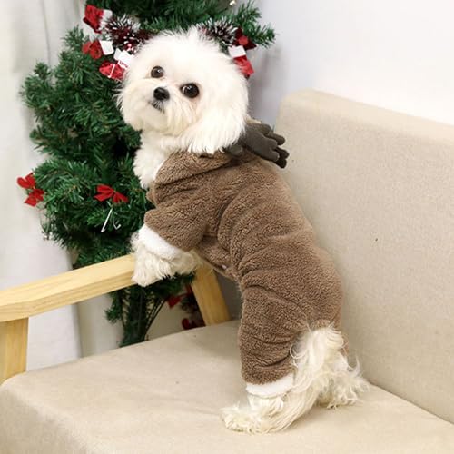 【Design Unico】Il costume di canna da natale renna, forma con pigiama dal design a 4 gambe, il tuo cane sarà avvolto nel comfort e nel calore durante la notte, aggiungendo un'atmosfera natalizia. Con il design del cappello con cappuccio: il tuo cane può resistere ai venti freddi anche in un inverno freddo.