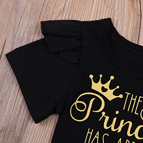 Body a maniche corte con scritta "La principessa è arrivata", per la ragazza del papà e il mondo della mamma, graziose increspature + pantaloncini e fasce per capelli in stampa leopardata