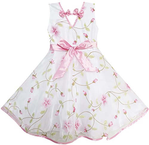Vestito Bambina Fiore Foglie Matrimonio Bianco Pageant Damigella d'onore Bambino Abbigliamento 4-5 anni