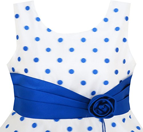Vestito Bambina Polka Punto Fiore Tulle Partito Unico Design Blu 7-8 Anni