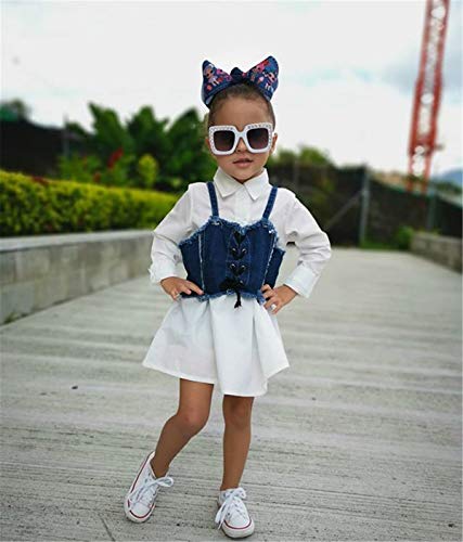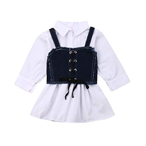 Vestito a Camicia per Bambina Camicia Bianca a Maniche Lunghe con Bottoni + Maglietta/Canotta 2 Pezzi Casual Elegante Moda 1-6 Anni (Camicia Lunga + Canotta, 4-5 Anni)