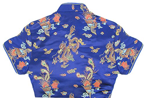 Vestito Cinese Corto Qipao a Maniche Corte Abito Donna Modello Blu Drago Taglia 48