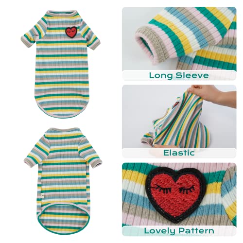 Vestito Cotone per Gatti Sphynx, Felpa Morbida Gatti T-Shirt Maglietta Invernale a Righe Cuccioli Shirt Veste Costume Gatti(Verde, S)